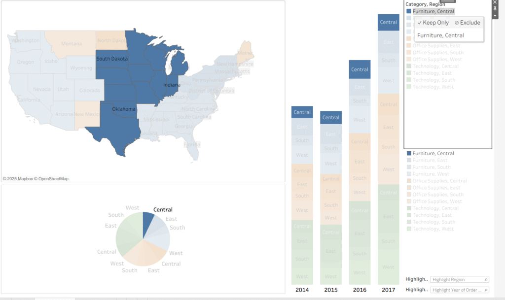 A highlight action is used to quickly draw your attention to a big data point by making them stand out in your dashboard through clicking, hovering or menu over the data points.