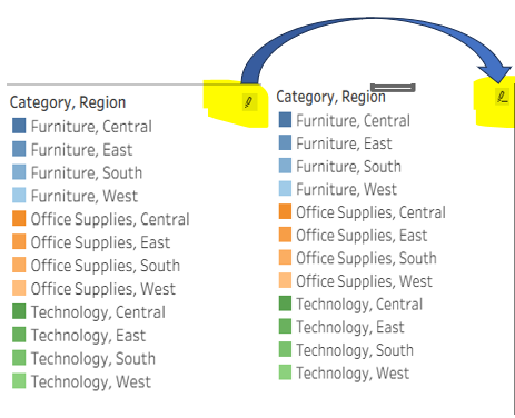 When we click on a field card, a pencil-like icon appears. Clicking on it displays a dash (–) next to the pencilicon, indicating that a highlight action is active. This will automatically highlight matching data across all sheets in the dashboard when you click on any field in the field(item) card.